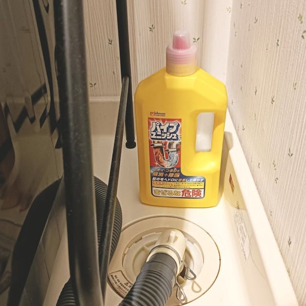 お風呂や洗面台の排水口に入れて濯ぐだけで、手が届かないパイプを綺麗にしてくれるパイプユニッシュ。 みなさん『ここ』に使うの忘れてませんか? それは…『洗濯機の排水口』です。 柔軟剤とホコリが合わさって意外と汚かったりします。ホースを外す→液を入れてしばらく放置→ホースを取り付け→洗濯機のすすぎでスッキリ✧ 時間は必要ですが、手はほぼかからないのでオススメです✧