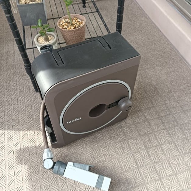 元々夫の趣味だった観葉植物。 夫婦で休みの日はベランダに鉢を出して、バケツリレーで水をあげていました。大変だったのでついにホースを購入。選んだのはデザインがいい、タカギさん。 散水口がフラットで、全体の厚みもホース界の中ではスリム。デザインがいいものはお高い傾向にありますが、こちらはリーズナブルでした。 持ち運びもしやすいし何より軽い。水やり捗っています✧