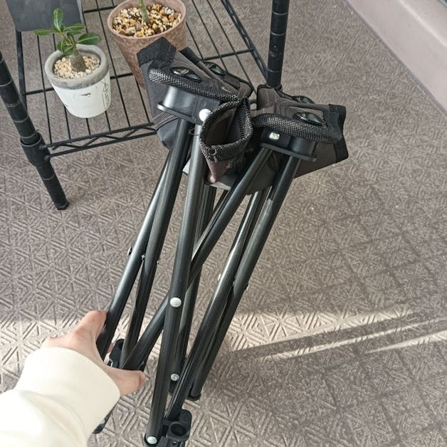 1つ前の投稿のホースと並び、我が家の趣味時間になくてはならない折りたたみチェア。 夫婦揃っての観葉植物のお世話の際、長時間の作業がとても楽になりました。特に剪定や鉢の植え替えの際に重宝しています。ミニチェアですが、しっかり座れて安心感があります。 折りたたみも秒でできて持ち運びも楽です。専用の袋も付いているので、最近は行けてませんが釣りのお供にもと考えています。