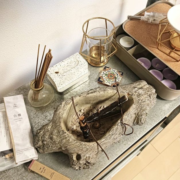 我が家にはお香や香木、アロマオイル、キャンドル等、お部屋をいい香りにするグッズコーナーがあります。 使い勝手のいいチャカチャカで火をつけると オシャレなカフェや雑貨屋さんの雰囲気が漂い始めます。 ―――いい香りのするおしゃれなお部屋は 椅子に脱いだ服はかかっていないし 床に髪の毛は落ちてないし 洗った食器は出しっぱなしじゃない――― と自然とズボラのやる気スイッチがONになります。