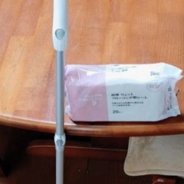 キッチンの床を掃除してたらシミが気になり、ウェットティッシュでゴシゴシしてたら腰が痛くなりました。 モップやフローリングワイパー、フローリング用シートを探して準備で疲れてしまいました。 やっと棚の上にあるのを見つけました。 早速取りかかりました。綺麗になりました。 やれば即完了。綺麗になりました。