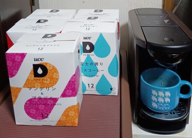 カインズさんから頂いたUCCドリップポッドで毎日美味しい珈琲を飲んでます。 朝の忙しい時にも重宝しています。 ドリップポッドの種類も豊富で楽しめてます。 好みは「マンデリン」です。 自分へのプチ贅沢楽しんでます。