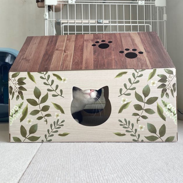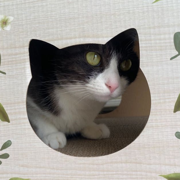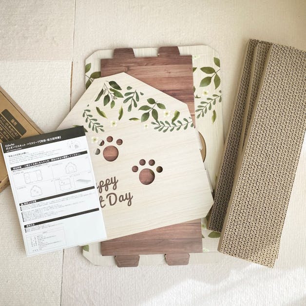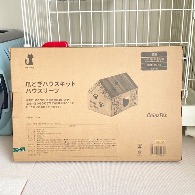 カインズではにゃん祭りを開催中なので店内には可愛い猫グッズがたくさんありました。そんな中で今回こちらを見た瞬間に迷わず購入しました! 中の爪研ぎが交換できるのが嬉しい。中が広いので爪研ぎしやすく猫も気に入った様子でした!