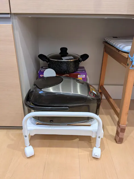空いているスペースに収納キャリークローゼット用をおきました ハンドル付きで出し入れが楽でお掃除もしやすいです!