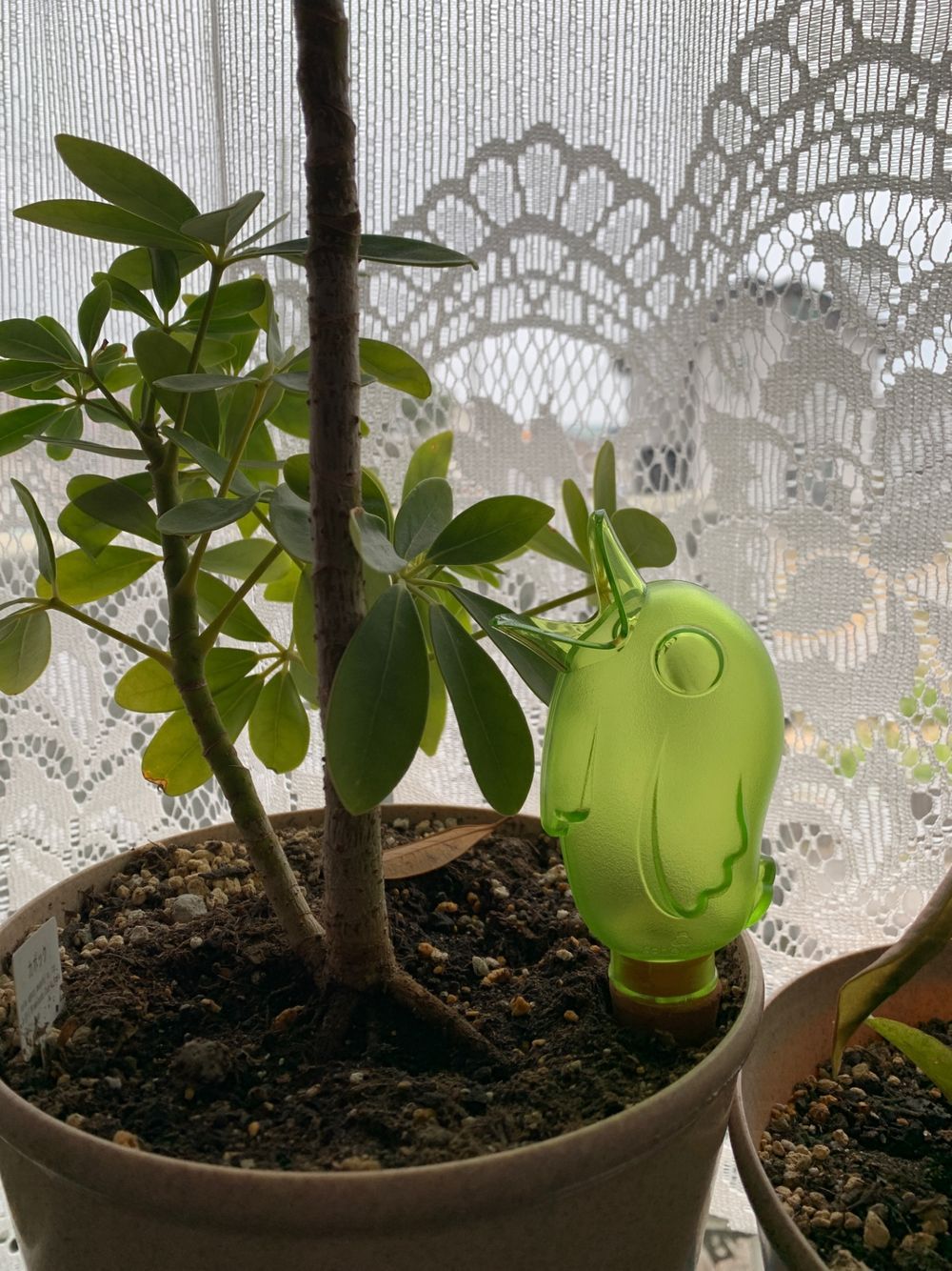 小鳥さんのかわいいウォーターキーパーです🐤 くらしに、ららら。の展示会で見かけて一目惚れ🥰 大きく口をあけてエサをおねだりしてるところかな?とってもかわいいデザイン💕ウォーターキーパーですがピックがわりに植木鉢に刺してます😆