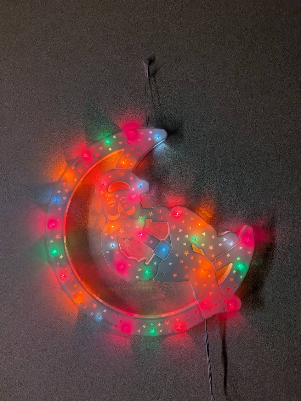壁にキズが目立ちにくい、石膏ボードフックを使ってクリスマスムードにしてみました。 サンタのイルミネーションをかけるだけですが、気軽にクリスマスの雰囲気になりました。 普段は違う小物をぶる下げて使用するつもりの場所なので、小さいながらも8キロの耐荷重は嬉しいです