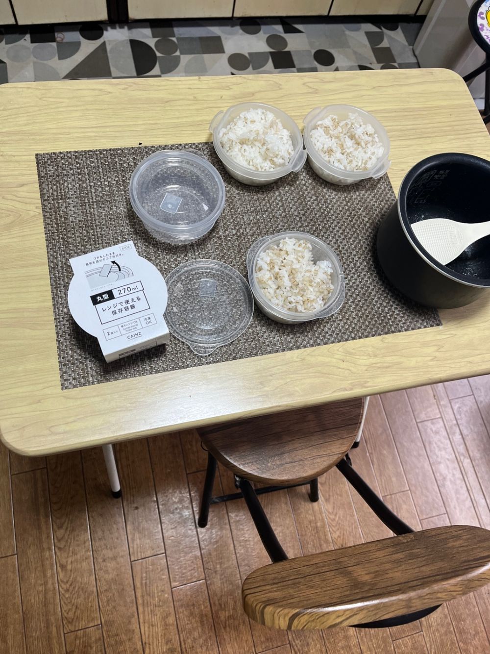 パソコン用に10年ぐらい前に買った物を台所の作業スペースとして使うようになりました。うちはご飯は毎日炊かないので、多めに炊いて冷凍する為にタッパーに入れたり、お弁当のおかずを入れたりするスペースとして使用しています。