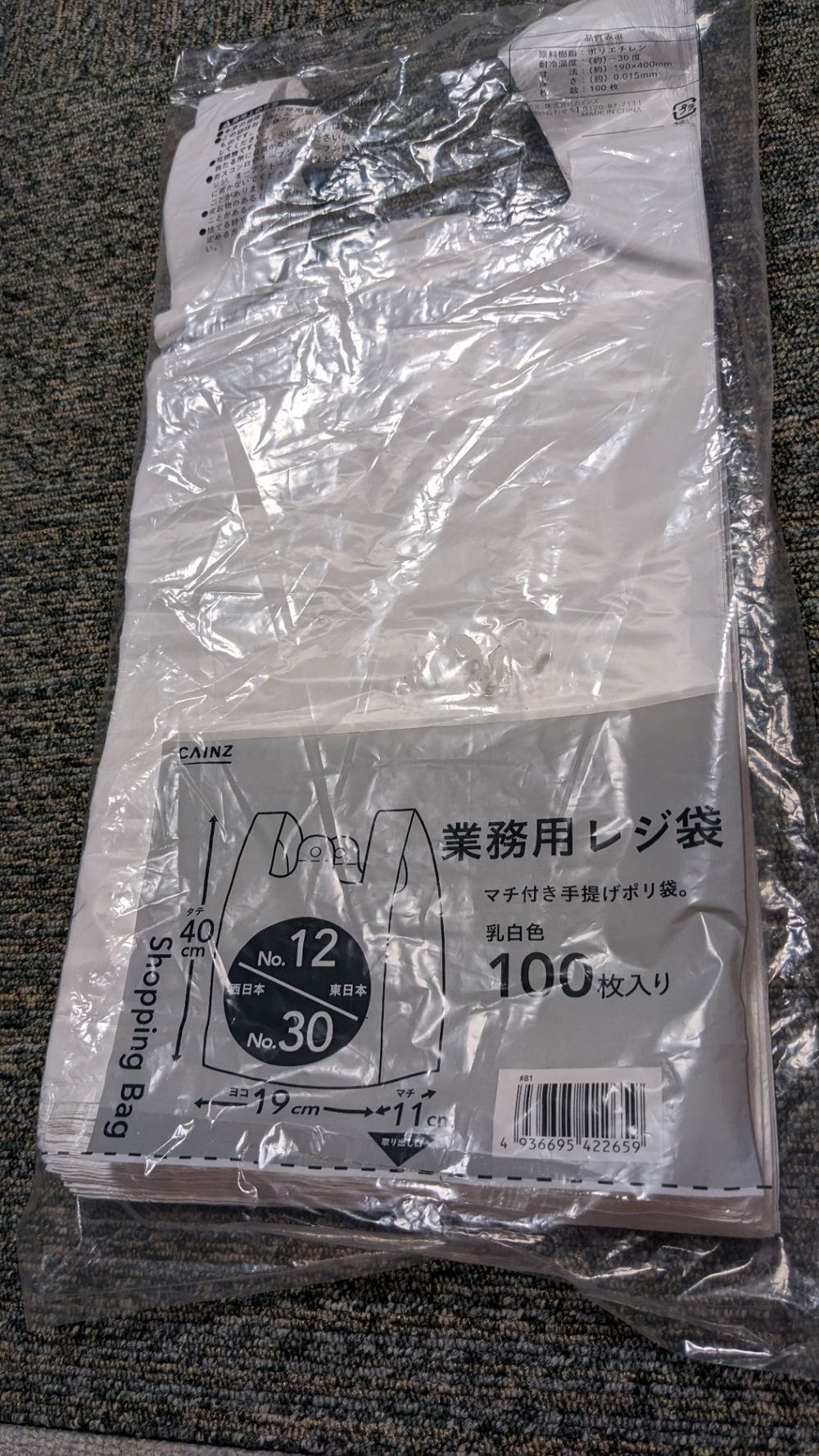 横にマチが付いているタイプのポリ袋。 ちょっとした小物やゴミ等を入れるのにちょうど良いかも。 中上部に通し穴があって、普段使いする場所に吊るしてもいいし、袋のまま丸めてカバンに収納すれば外出や旅行にも使いやすい。